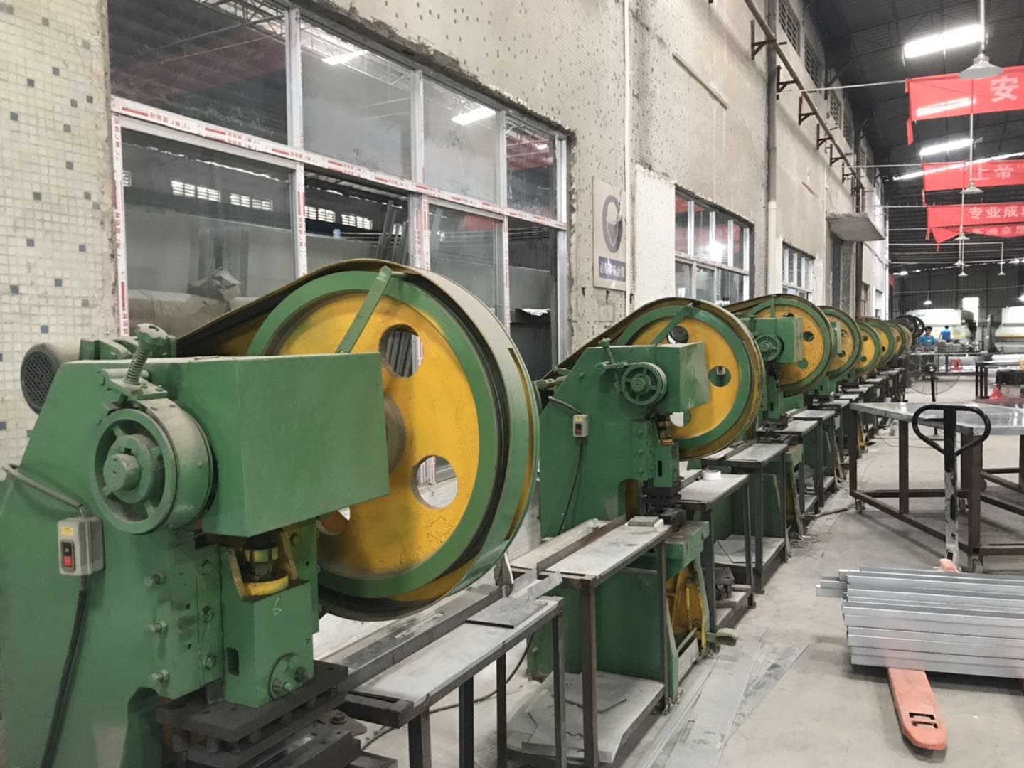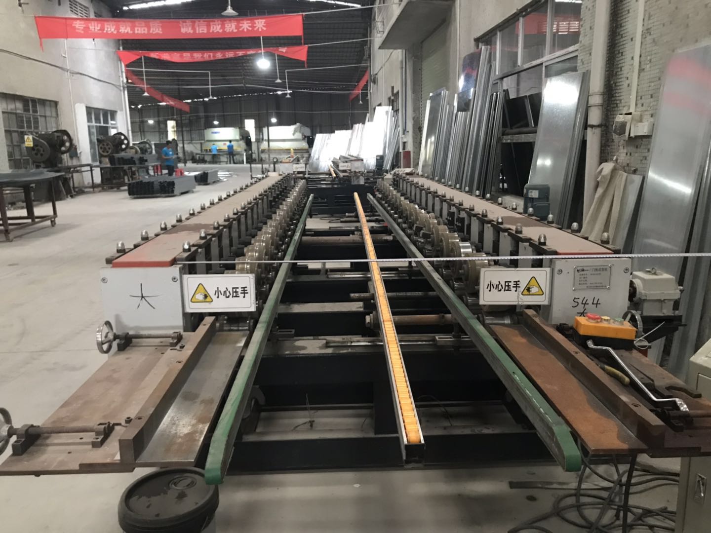當然,貨期短的優(yōu)勢,不僅是依靠技術熟練的工人,更需要一個質變的機器。在我們訪問了許多先進設備廠,決定引進防火門先進設備。如下圖:高速拉框機,18臺打孔機以及無需折彎的拉扇機,這些設備都是防火門行業(yè)最先進的設備,能夠應付95%以上的情況。